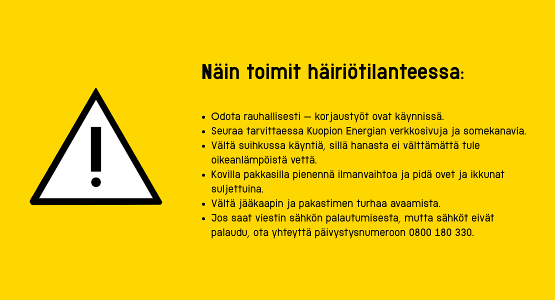 Sähkö- ja kaukolämpökatkot ovat Kuopiossa harvinaisia ja yleensä lyhytaikaisia. Poikkeustilanteisiin on kuitenkin varauduttu, ja asiakkaille viestitään häiriöistä nopeasti.