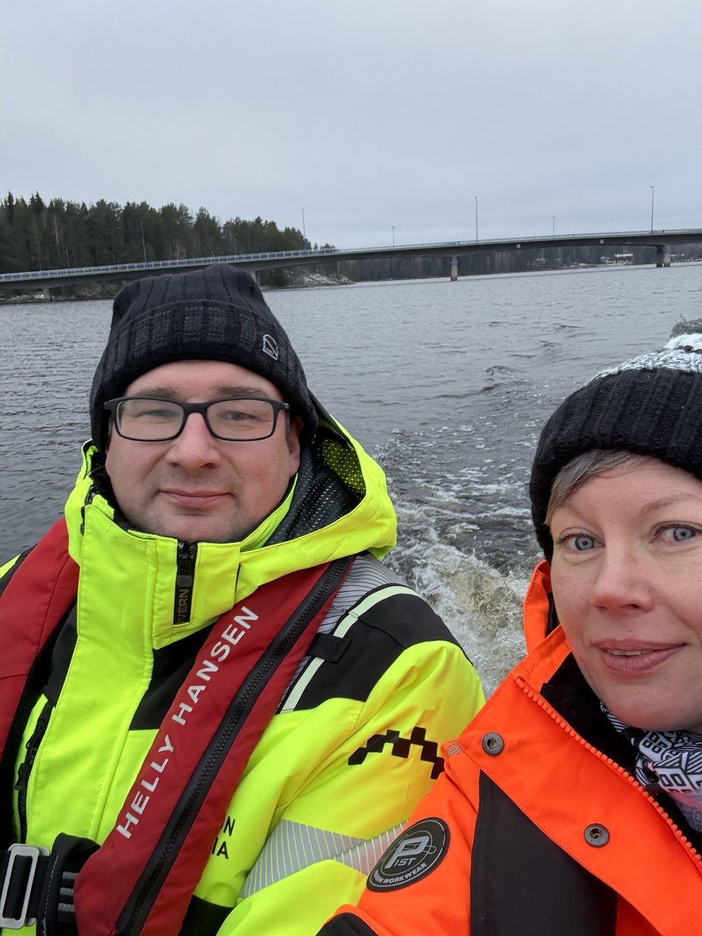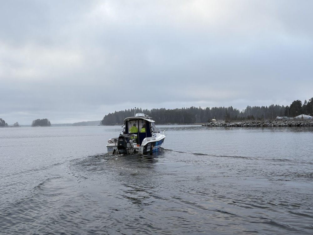 Marraskuisella Kallavedellä Stella Marian asiantuntijat tutkivat järven pohjaa viistokaikuluotaamalla. Heidän alus oli hyvin tähän työhön varusteltu ja lämmin. Kuopion Energian kehitys- ja viestintäimmeiset jalkautuivat myös raikkaaseen järvi-ilmastoon. Sanotaanko, että kesällä tehtyä kasvillisuusselvitystä oli huomattavasti kivempi käydä kuvaamassa. Ihan melkoinen viima kävi tämän kaksikon Busterin paahtaessa eteenpäin.