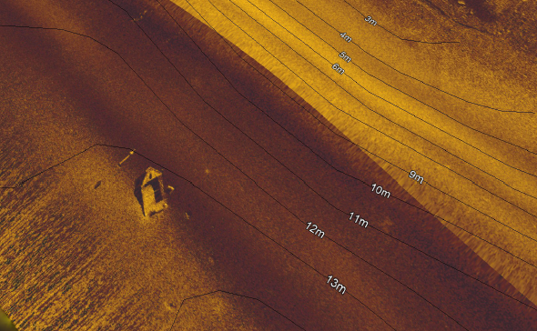 Luotaamisella kartoitettiin pohjan muotoa, kivikkoja, pohjassa jo olevia kaapeleita ja putkia sekä muita huomioitavia asioita. Ennakkoon oli jo veneilyä harrastavalla Petrillä tiedossa, että järvenpohjassa on muutamia hylkyjä ja jo melkoinen määrä kaapeleita. Ennakkotieto piti myös paikkansa. Kaapelit ja putket erottuivat tosi selkeästi luotauksessa. Jopa upotukseen käytetyt painot erottuivat kuvista. Kuvaan osuneessa venhossa ei sentään näkynyt kipparia mukana. Mikähän lie tuonkin venhon tarina?