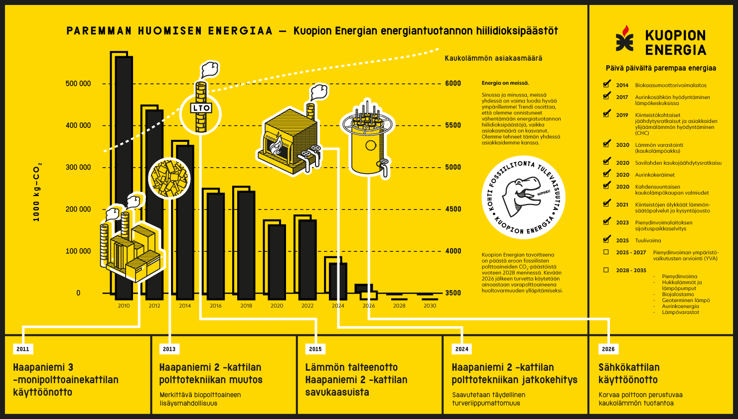 Vihreän siirtymän käynnistyminen energiantuotannossa viime vuosikymmenellä on ollut vastaus ilmastonmuutokseen. 2010-luvulla alkoi järjestelmällinen fossiilisten polttoaineiden käytön vähentäminen lämmön tuotannossa. Ensimmäiseksi painopiste siirrettiin kotimaisten uusiutuvien puupohjaisten polttoaineiden hyödyntämiseen (Haapaniemi III ja Haapaniemi II -kattilamuutos). Tämä mahdollisti raskaasta öljystä luopumisen Haapaniemellä ja turpeen hallitun alasajon käynnistymisen. Toisessa vaiheessa keskityttiin energiatehokkuuden ja päästöjen hallinnan parantamiseen (savukaasupesuri ja lämmön talteenotto), minkä seurauksena polttoaineen tarve väheni noin 20 % ja päästöt vähenivät murto-osaan aikaisemmasta. Kolmas vaihe toi teknisiä ratkaisuja turpeesta luopumisen mahdollistamiseksi (Haapaniemi II polttotekniikan kehitys). Neljännessä vaiheessa sähkökattila otetaan käyttöön Haapaniemellä keväällä 2026, mikä mahdollistaa uusiutuvan, pääasiassa tuulisähkön hyödyntämisen joustavasti kaukolämmön tuotannossa. Myös hukkalämpöjen hyödyntämiseen sekä pienydinvoimaan liittyvät selvitys- ja toteutushankkeet ovat käynnissä. Sähköön perustuvan tuotannon kasvu tulee jatkossa vähentämään polttamista ja biopolttoaineiden tarvetta.